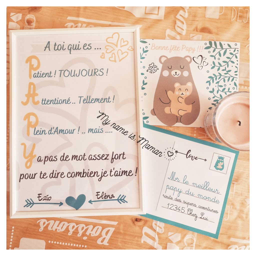 Le 4 octobre c’est la fête de papy !! Et on n’en parle pas …. Ici je ne la loupe pas ! Cette année j’avais envie de quelque chose qui change! Et comme tu le sais j’ai lancé ma boutique en ligne il y a peu …Alors autant en profiter et te faire partager ma création !